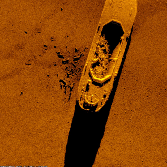 Synthetic Aperture Sonar (SAS), resolution 3x3cm. In-mission processing.